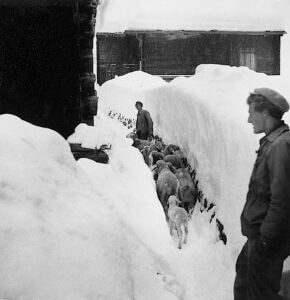 Zügeln der Schafe im Hochwinter