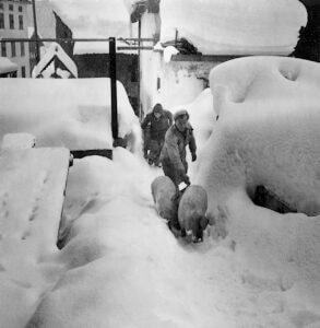 Zügeln der Schweine im Hochwinter