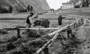 Wildheuernte im Dorf