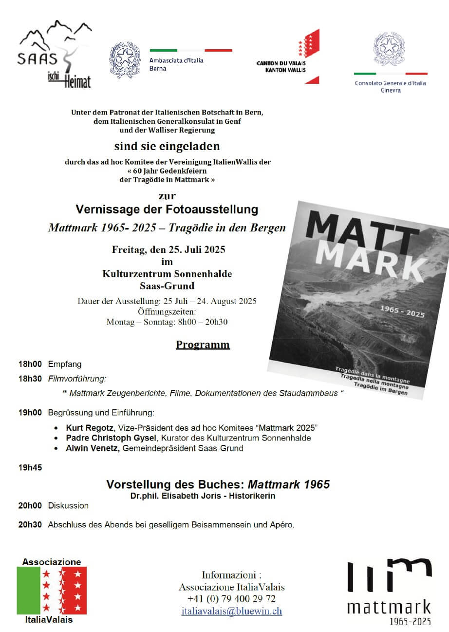 Vernissage Mattmark 1965- 2025 – Tragödie in den Bergen